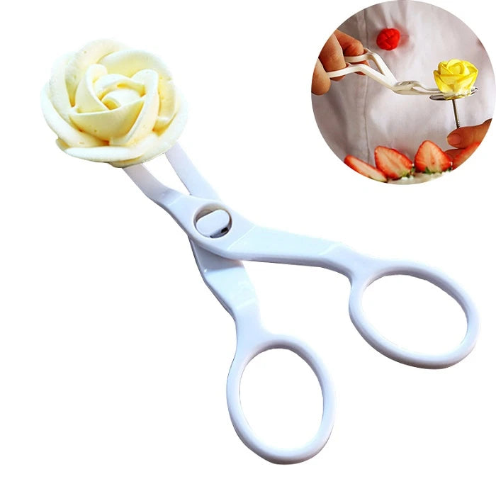 კრემისებრი ყვავილების მაკრატელი - ინსტრუმენტი კრემთან მუშაობისთვის ყვავილების დამზადებისას. გამოიყენება ცომის ლურსმანიდან კრემისებრი ყვავილების ამოსაღებად და ნამცხვარზე ან სხვა საკონდიტრო ნაწარმზე გადასატანად. ზომა (საერთო სიგრძე): 13.5 სმ ერთი ყურის სიგანე: 0.9 მმ